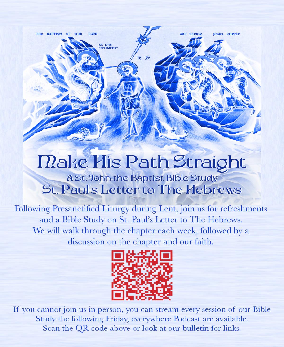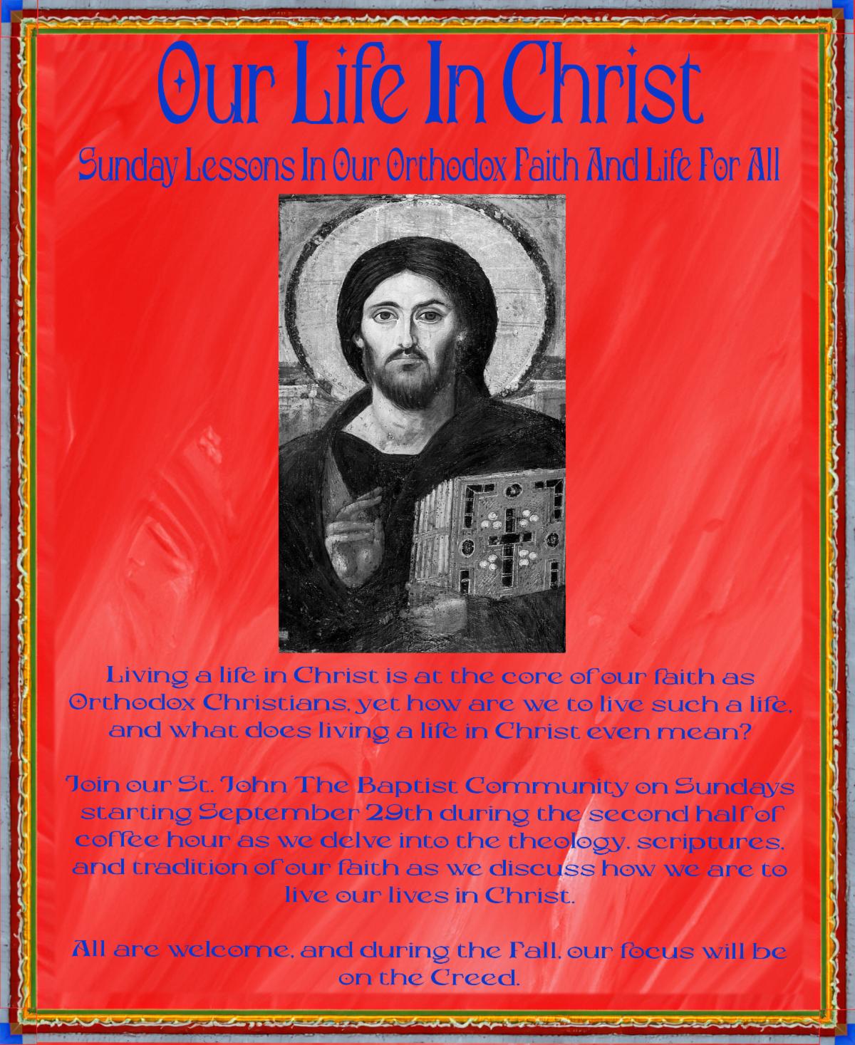 Now that we have concluded this book, the plan is to take a break until September for our weekly sessions, so we can come back strong with St. Paul’s letter to the Galatians in the Fall. New sessions will start on September 3rd. If you’re looking for more of our Bible studies, you can stream complete Bible studies of Mark, Luke, Acts, First Corinthians, Second Corinthians, Romans, and now Hebrews. | So, thank you from the bottom of my heart for continuing to go on this jourey with me. If I have in any way misled or offended any of you in this process, I ask your forgiveness, and I pray that God continues to heal all wounds. It has been the pleasure of my life to walk with you all as we continue to discern how to know, love, and serve God as He does us all, and I can’t wait to see what God has in store for us as we move into another chapter! | | | All are welcome to join our St. John The Baptist community on Sundays during the second half of coffee hour in the conference room for our weekly journey through the theology, scriptures, and tradition of our Orthodox Christian faith and life. During the Fall, we will unpack the Creed and ask the question of what does it means and how is it calling us to live as Orthodox Christians. This will also be an opportunity to ask any questions you may have about our faith, so join us for our brief lesson and discussion.