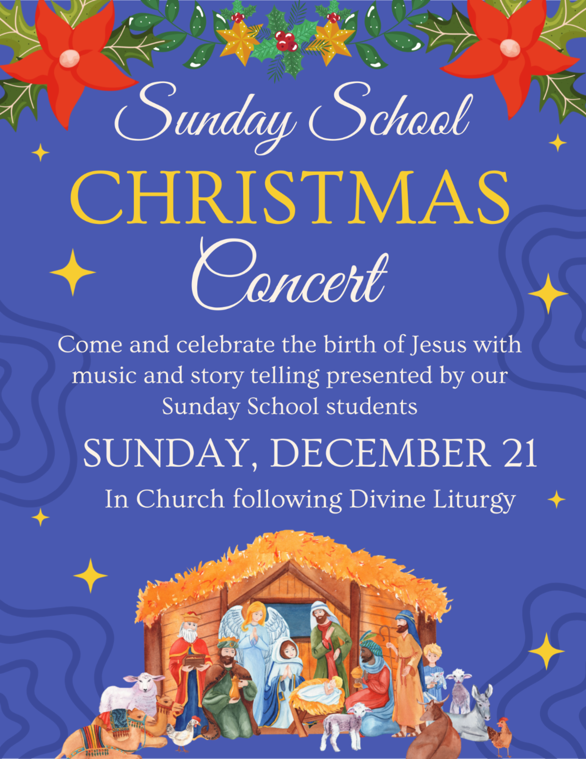 | Sunday, December 21st, 2025 Sunday Before Nativity | | | | Join us in person on Sunday as we celebrate Divine Liturgy for the Sunday Before Nativity or if you are ever unable to join us in person for services, please visit our YouTube and FaceBook channels to participate via the live stream.